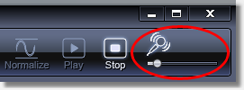 The recording level is set with the slider on the toolbar.