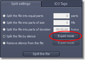 You can modify the silence detection settings by clicking the "Expert mode" button.